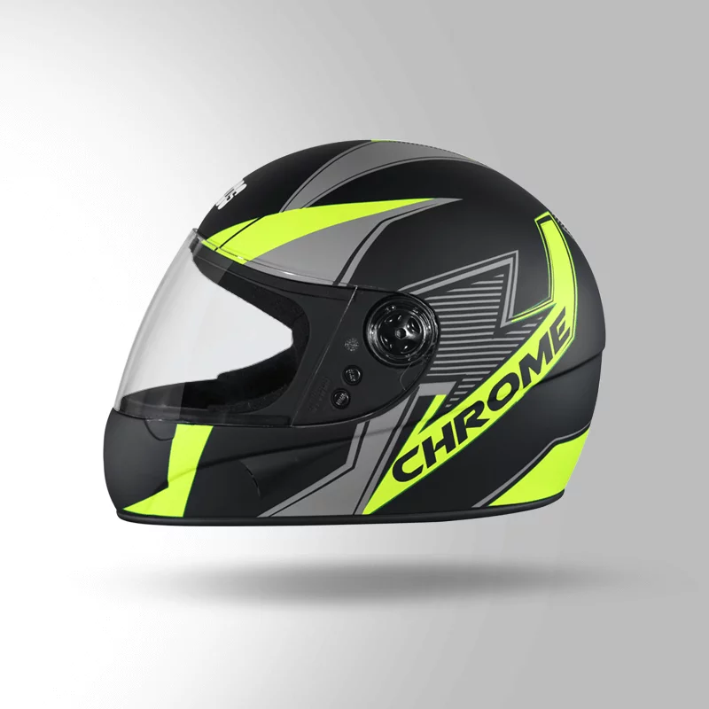 A compact design which fits perfectly in all your city rides safely. Chrome D5 Decor is a high impact full-face helmet with product features like regulated density EPS, hypoallergenic liner and quick release chin strap.